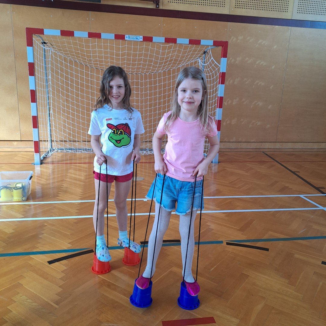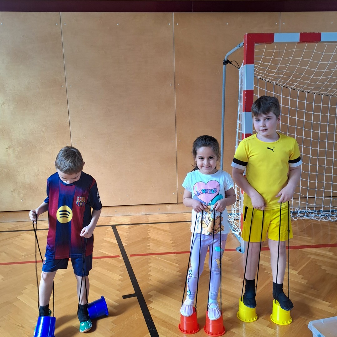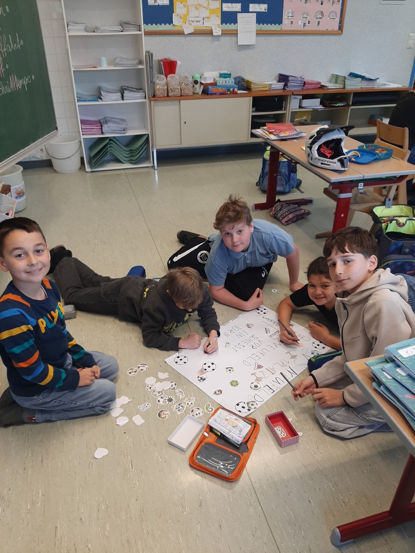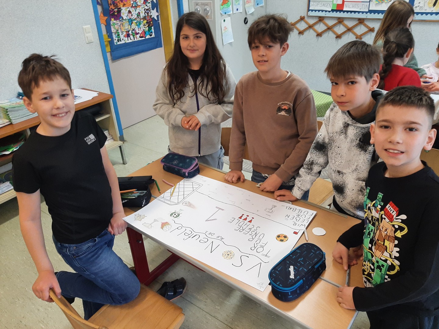 Um unsere Mädchen der 4AB beim Hopsi Hopper Cup am 23.04.2026 bestmöglich unterstützen zu können, wurden fleißig Fanplakate gestaltet und Sprüche geübt.