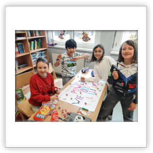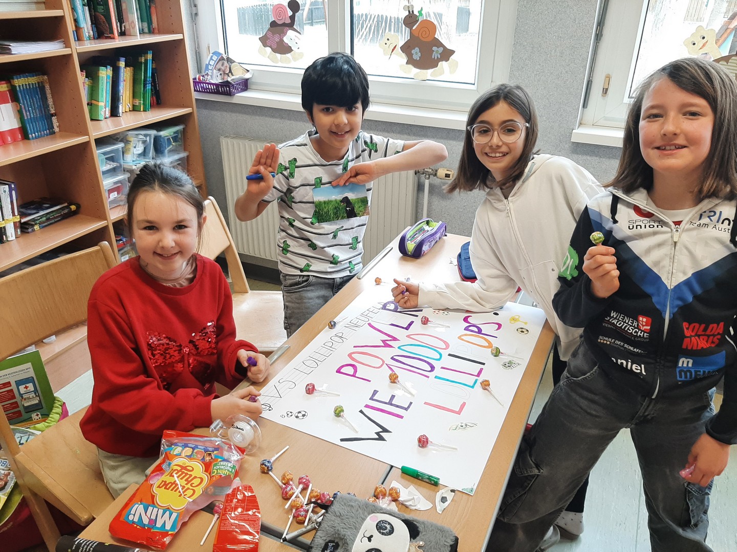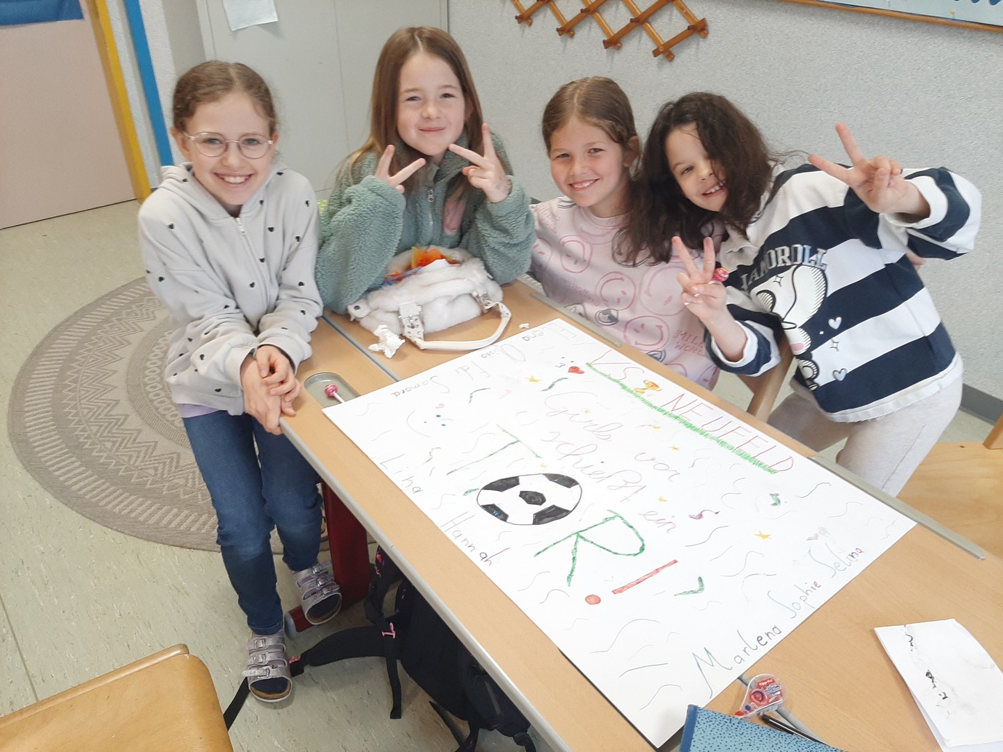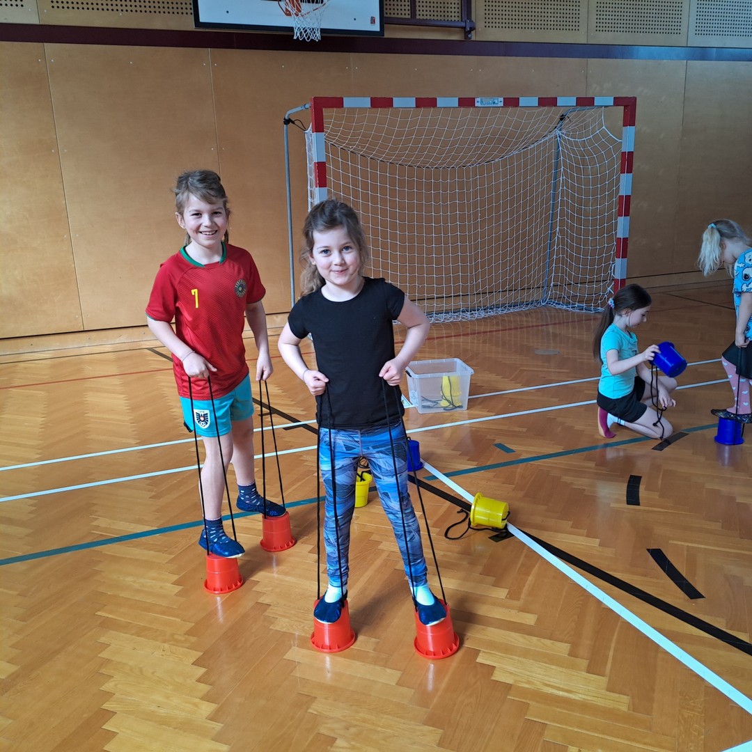 Um unsere Mädchen der 4AB beim Hopsi Hopper Cup am 23.04.2026 bestmöglich unterstützen zu können, wurden fleißig Fanplakate gestaltet und Sprüche geübt.