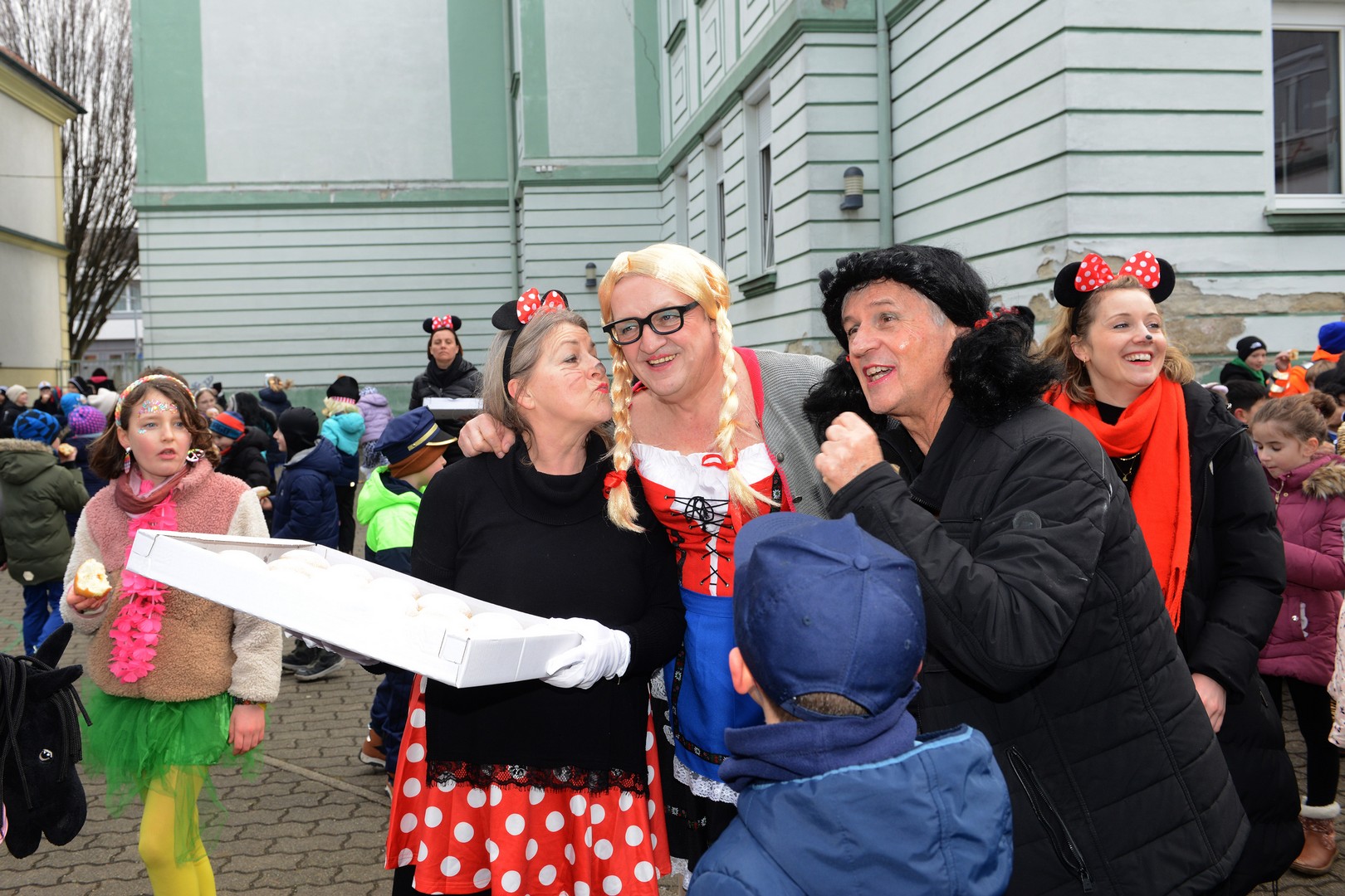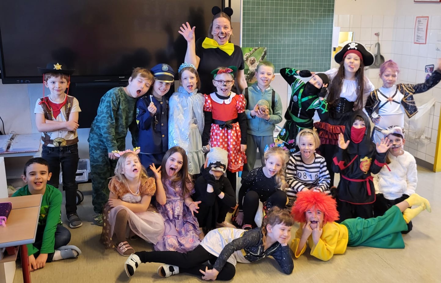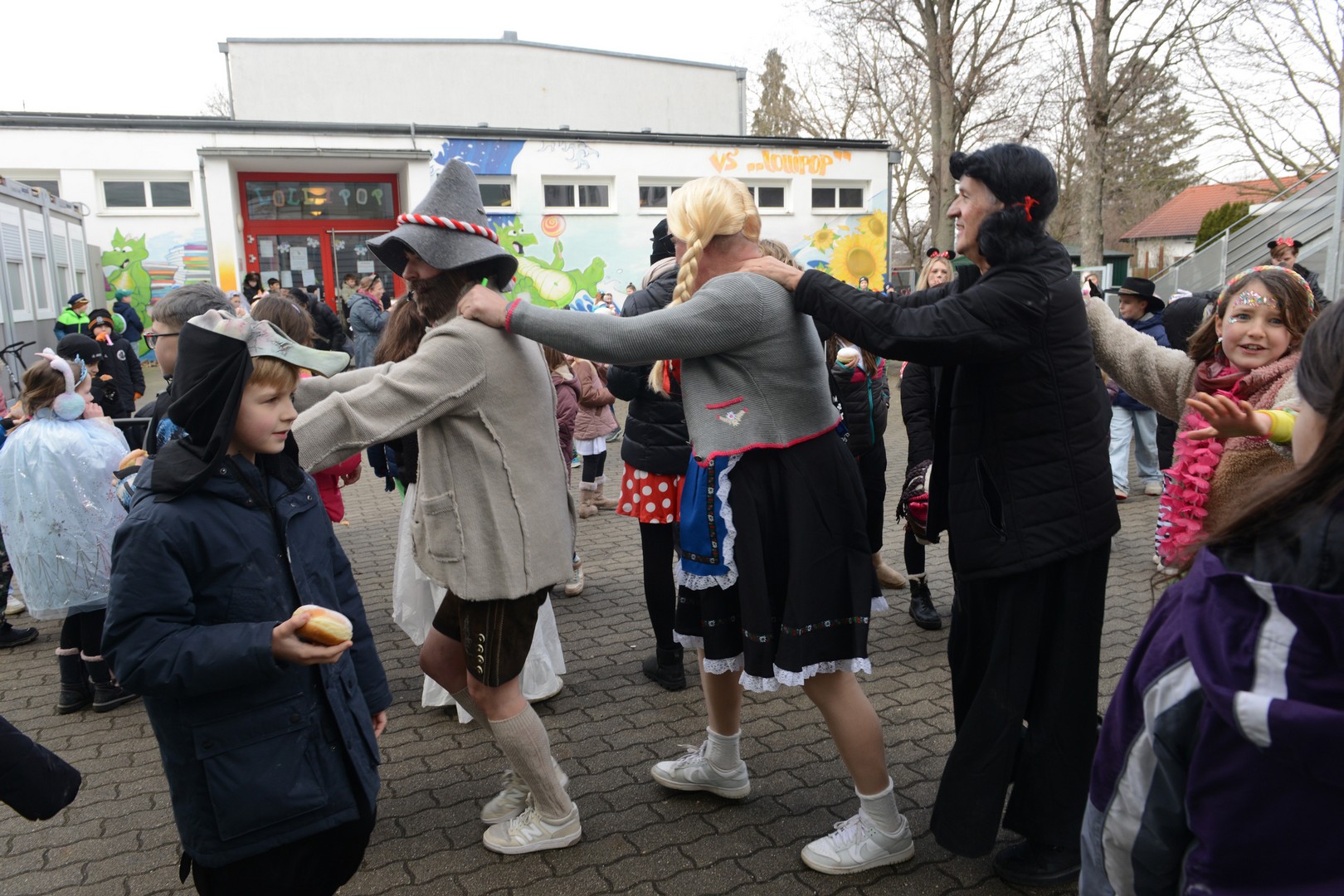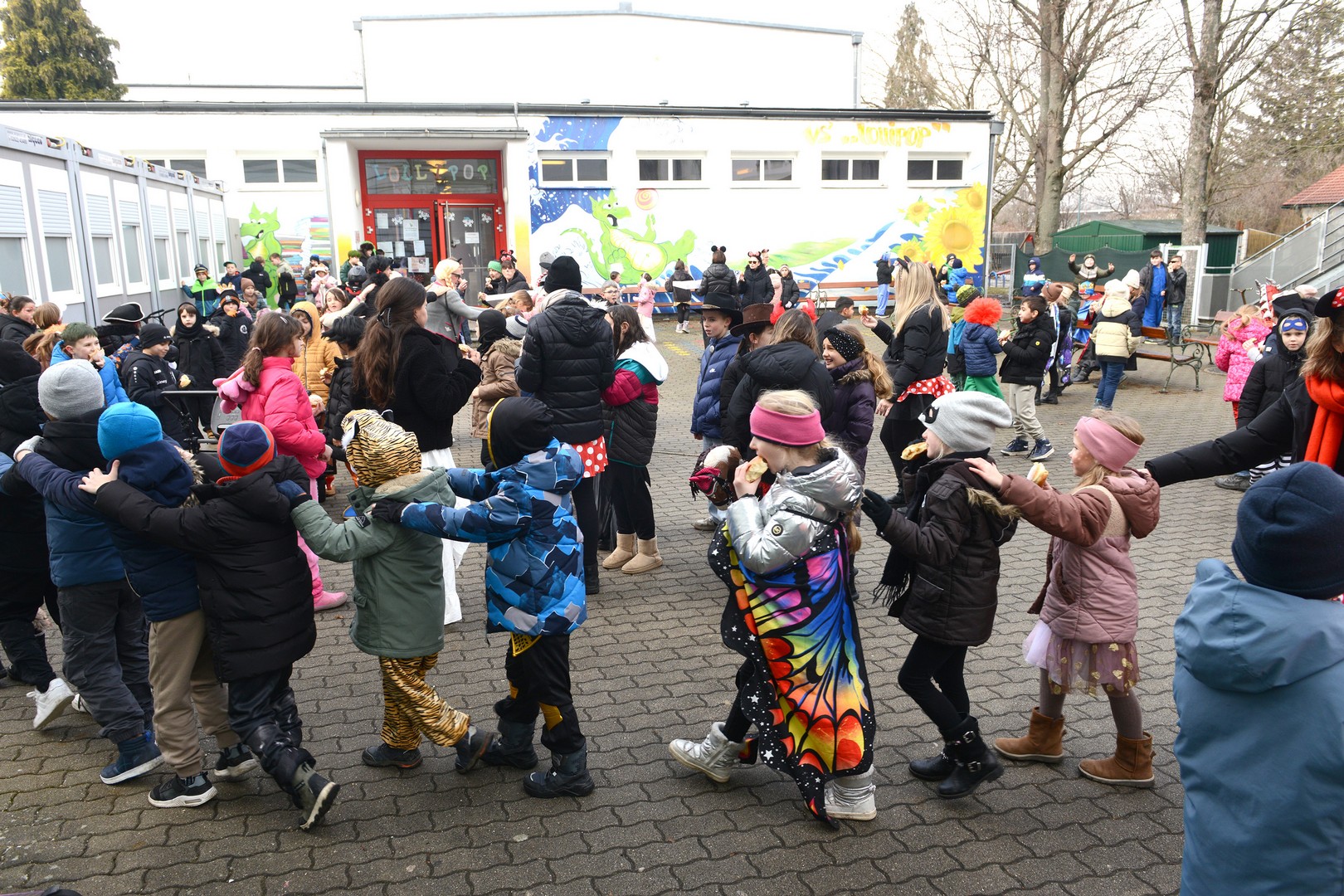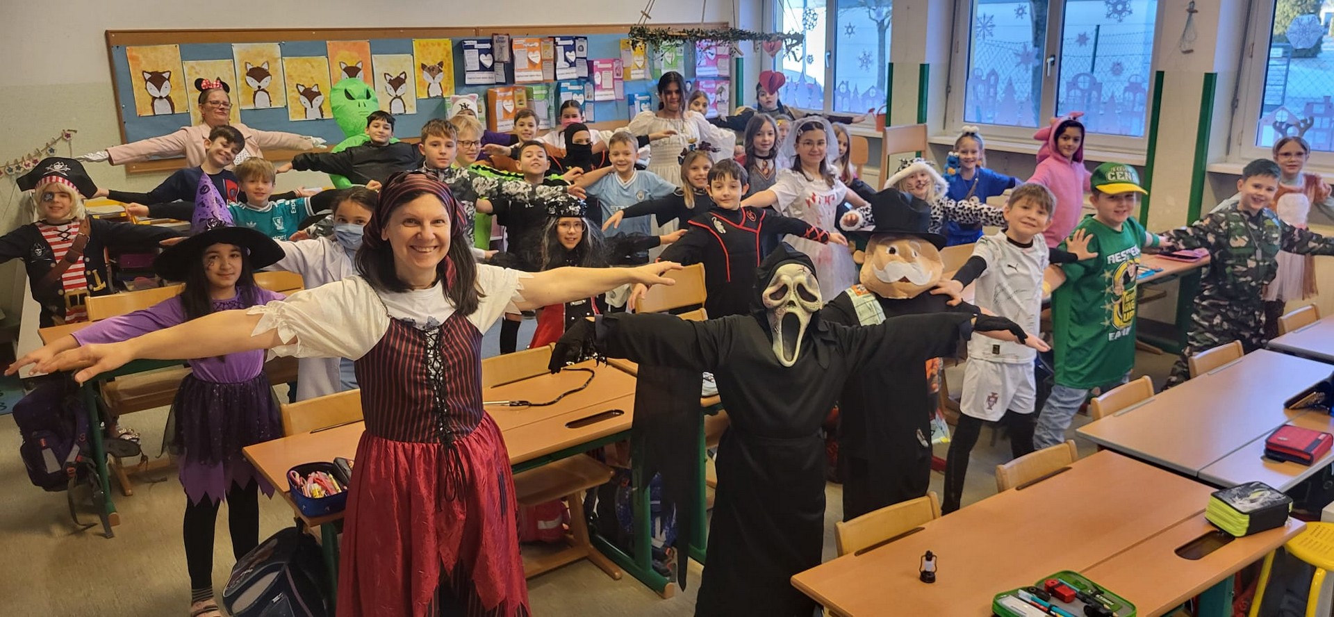 Am Faschingsdienstag ging es in der Volksschule Lollipop bunt zu: Es gab ein Theaterstück, einen Faschingsumzug durch die Stadt und ganz viele Faschingskrapfen!