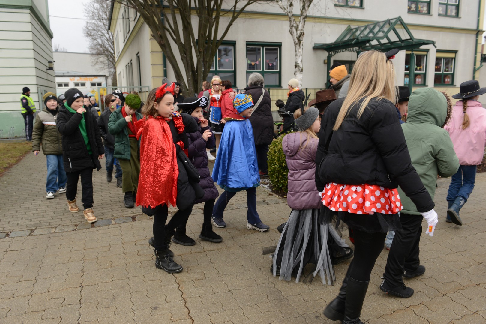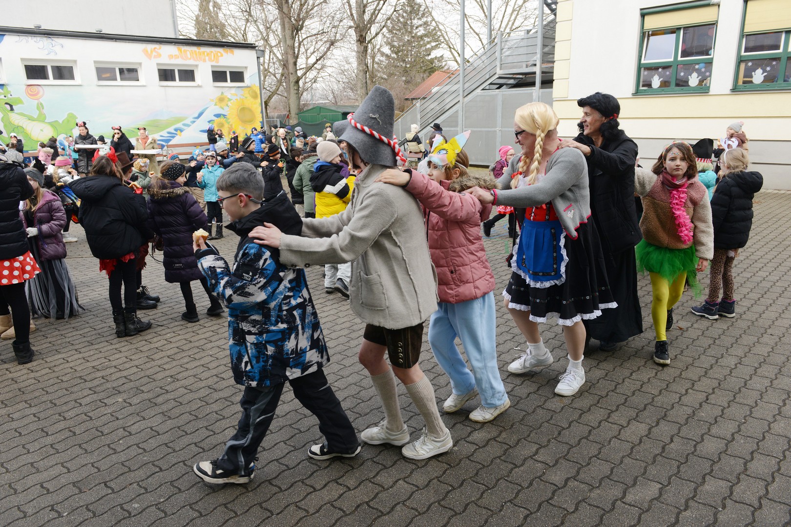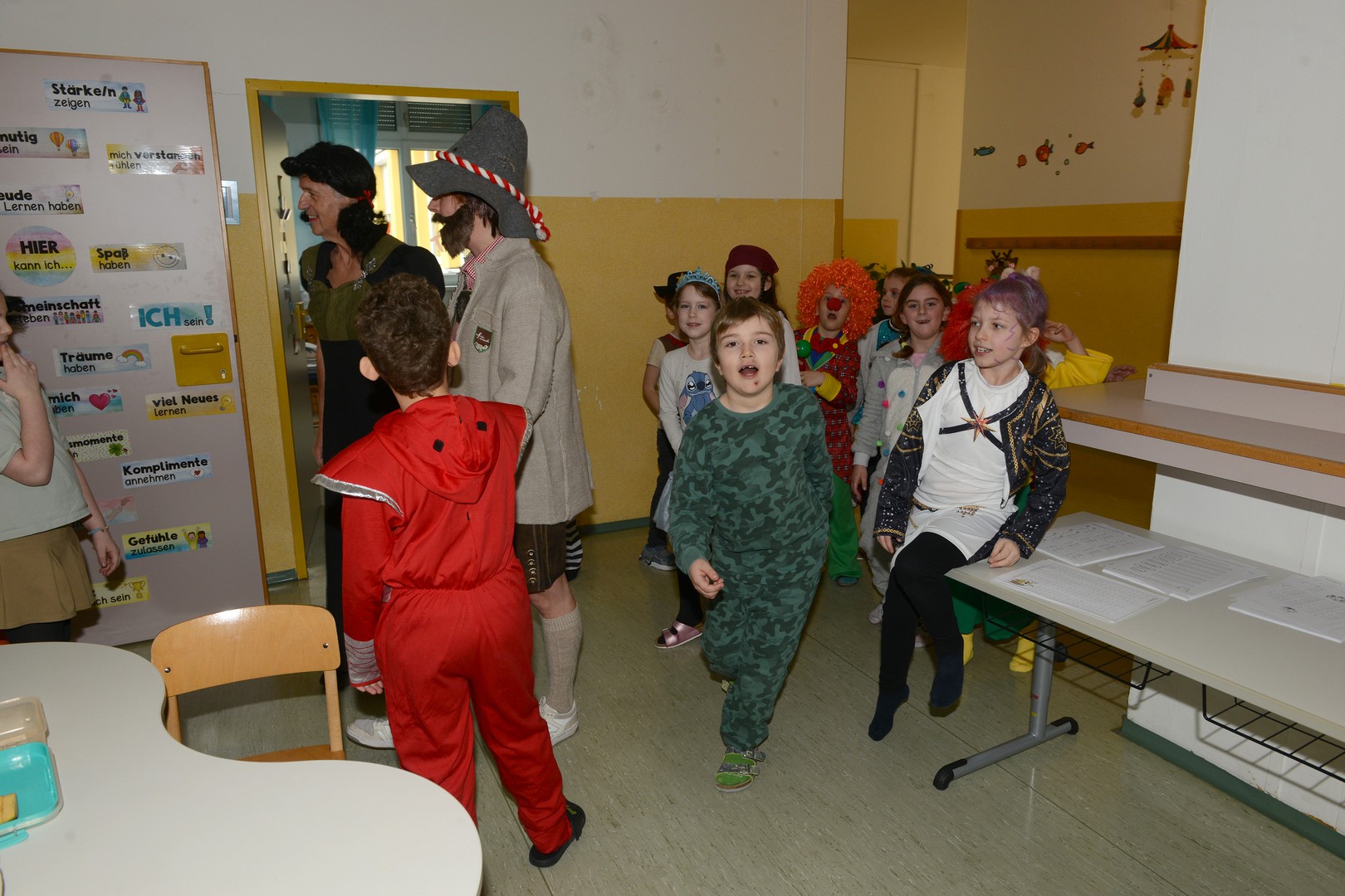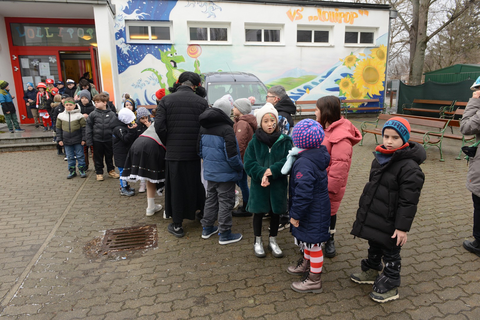 Am Faschingsdienstag ging es in der Volksschule Lollipop bunt zu: Es gab ein Theaterstück, einen Faschingsumzug durch die Stadt und ganz viele Faschingskrapfen!