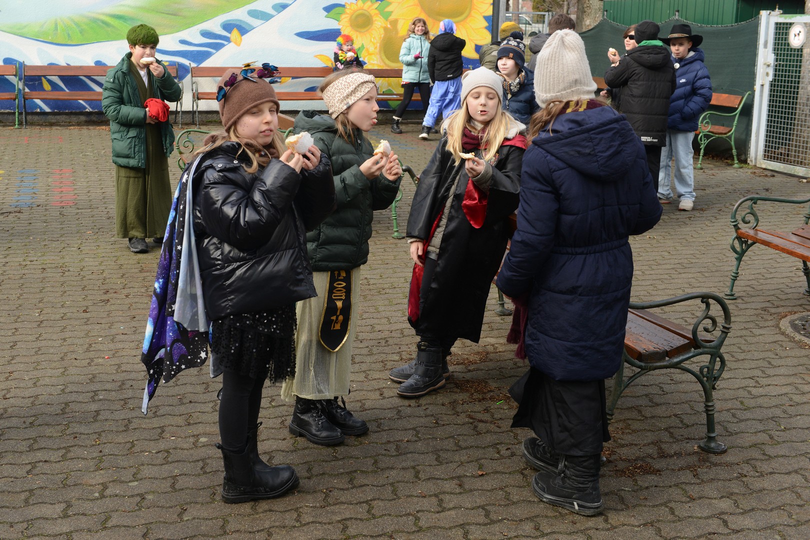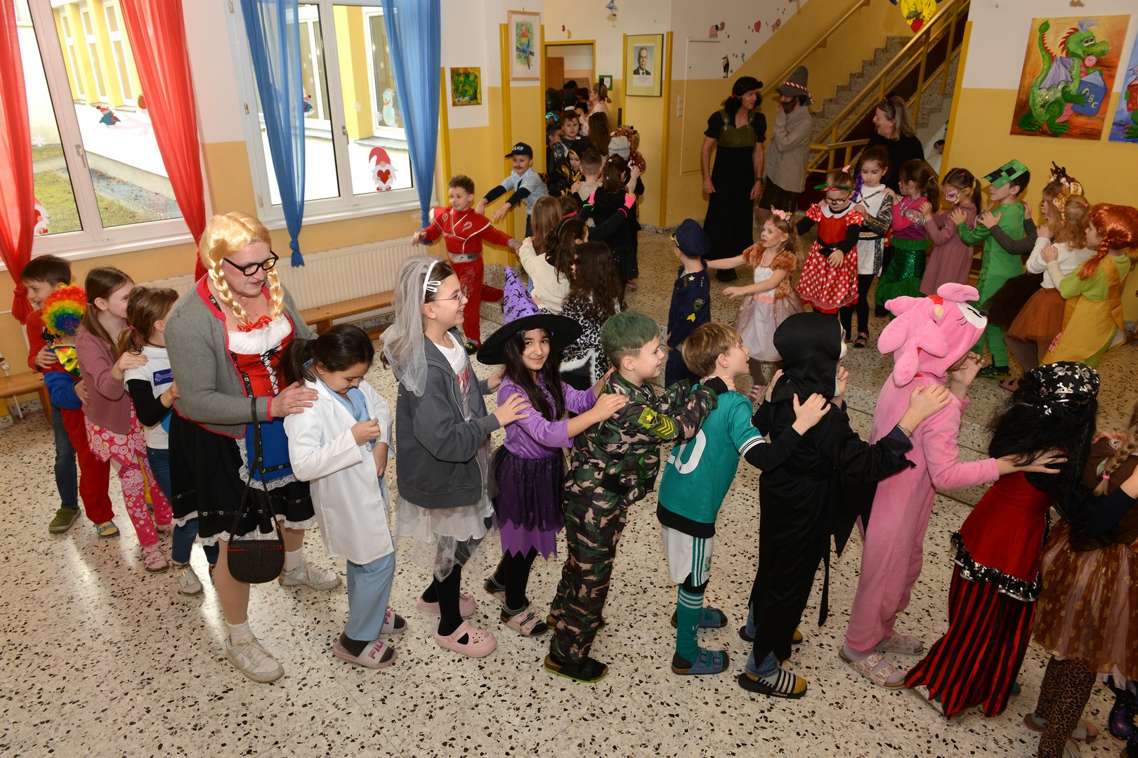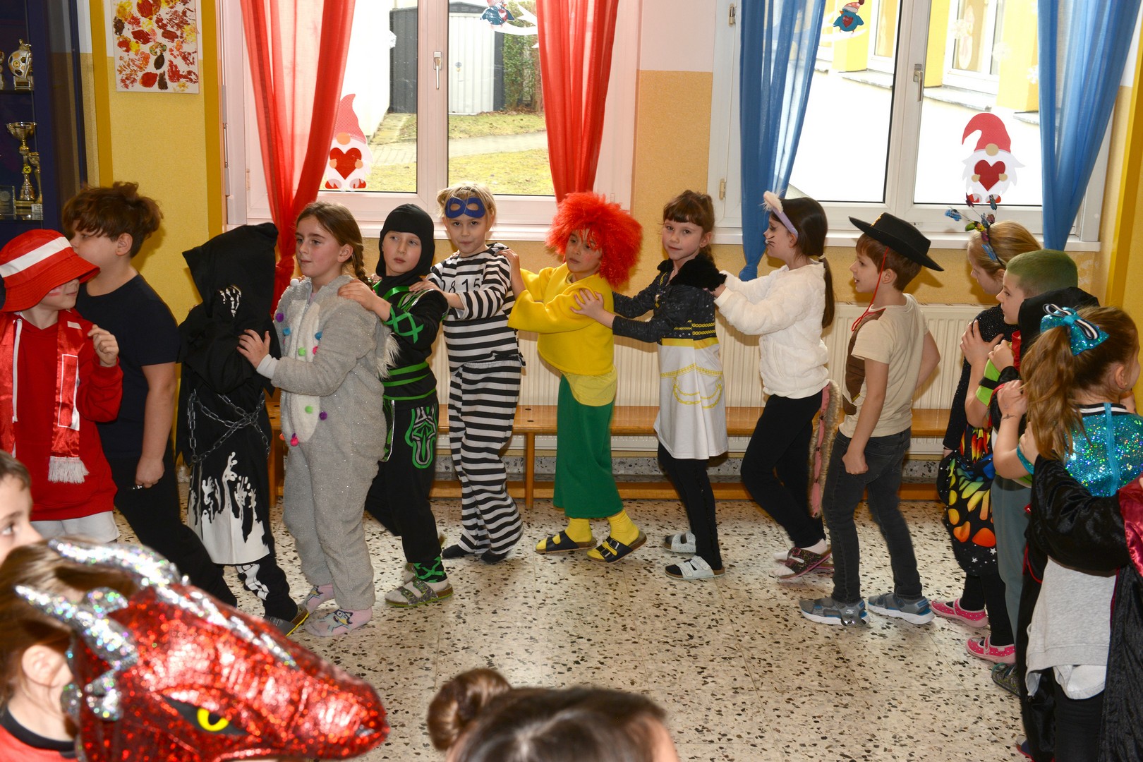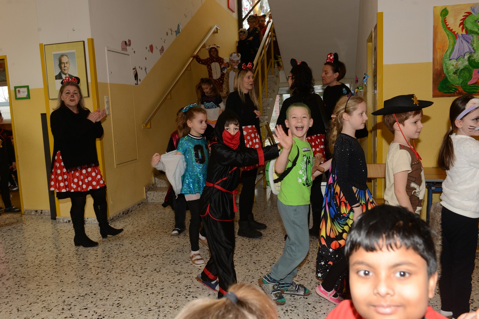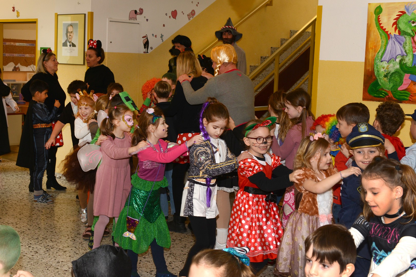 Am Faschingsdienstag ging es in der Volksschule Lollipop bunt zu: Es gab ein Theaterstück, einen Faschingsumzug durch die Stadt und ganz viele Faschingskrapfen!