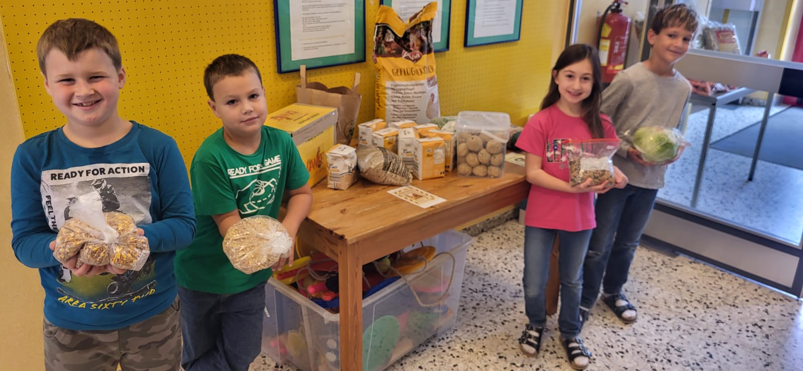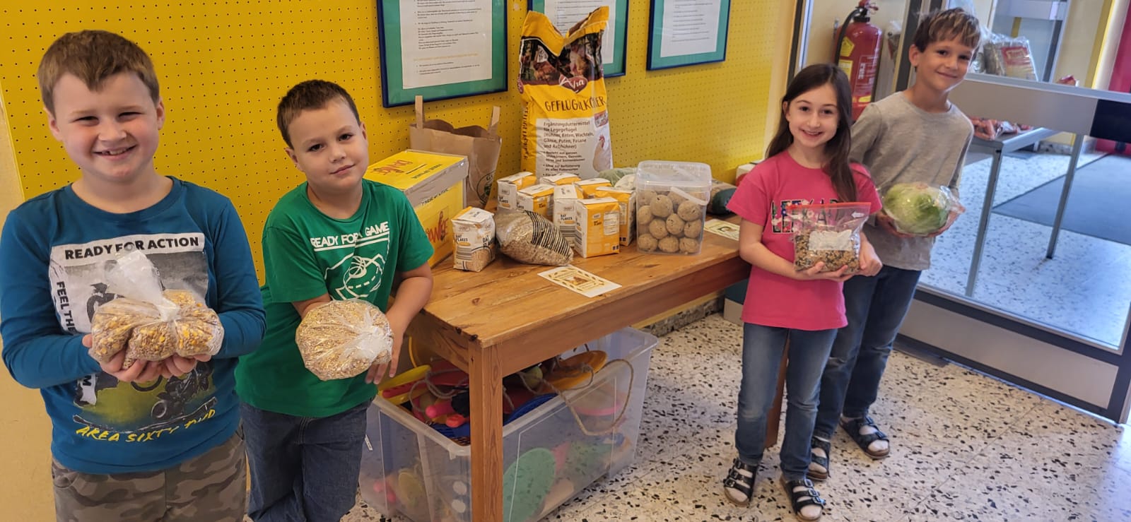 Soziales Lernen ist ein wichtiger Teil von Bildung – so haben die SchülerInnen der VS Neufeld anlässlich des Welttierschutztages, den 04. Oktober, gemeinsam Tierfutter für die in Neufeld lebende und für ihre Tierliebe und ihren Einsatz bekannte Angi gesammelt. Denn so wie wir für unsere Mitmenschen mitverantwortlich sind, gehört auch der Schutz von Tieren und Natur zu unseren Aufgaben.